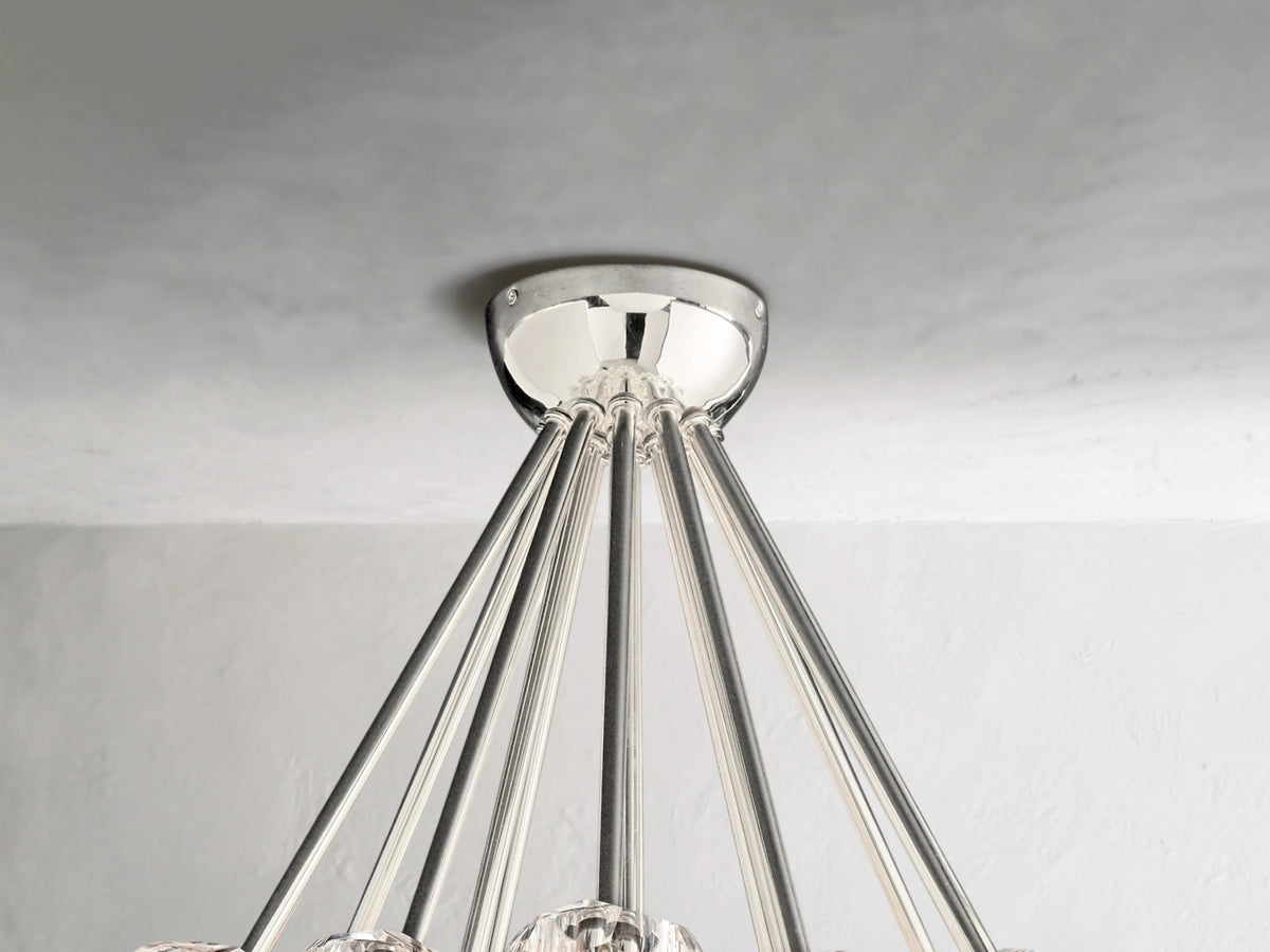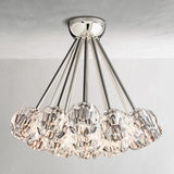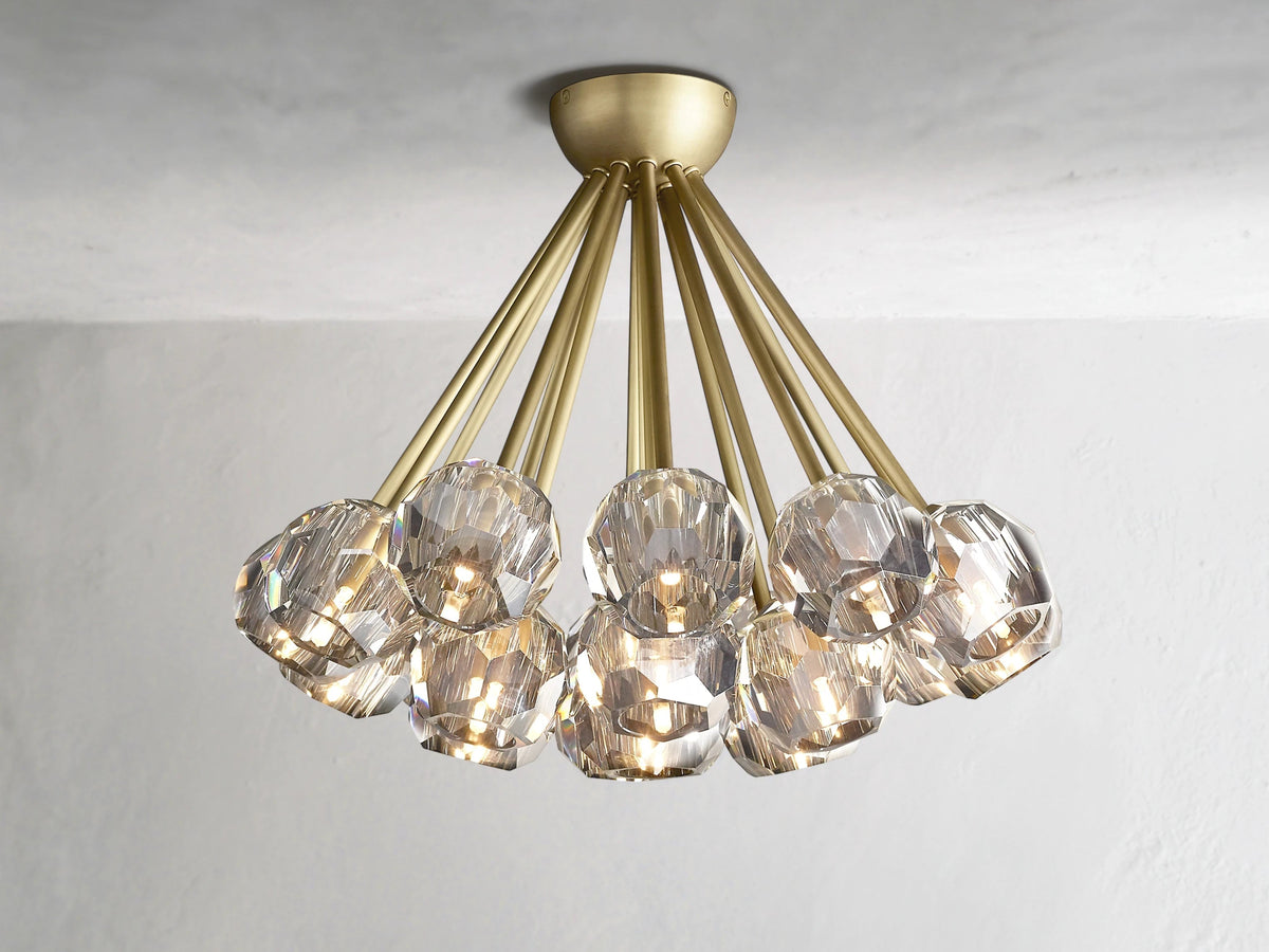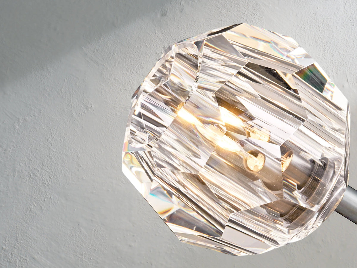 With its precise geometry and radiant materials, this flushmount light brings the refined drama of crystal to ceilings where space is limited but impact is essential. A series of faceted crystal spheres, polished by hand, refract and reflect light across the room¡ªcreating a sophisticated statement in both modern and transitional interiors.